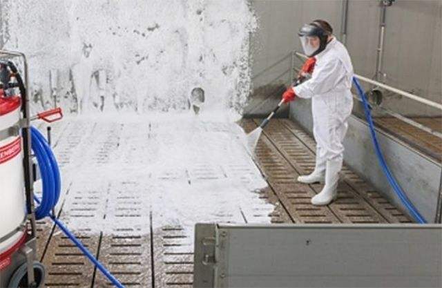 12. 經常保持豬舍、生產區(qū)和生活區(qū)的環(huán)境衛(wèi)生,及時清理污染物,并選用低溫下有效的消毒藥,定時噴霧消毒。重點加強裝豬臺的消毒,因為這是疾病進入豬場的重要通道。