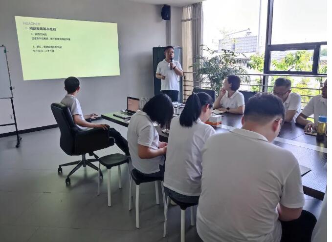 生產(chǎn)部經(jīng)理羅貝貝帶大家回顧了公司上半年的改善內(nèi)容和下半年的改善計劃。